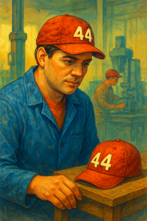 Старая, замасленная, когда-то красная, а теперь скорее буро-рыжая. На боку белела цифра 44, местами стёртая. Ничего особенного. Но он привык: в ней затылок не потеет, и ящики таскать легче.