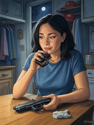 Вернувшись на кухню она достала из ящичка пистолет, ловко отстегнула магазин с патронами и задумчиво стала чистить - будто в каждом движении искала ответ на собственные вопросы.